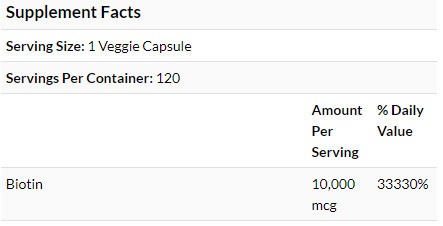 Doctor's Best Biotin 10,000 mcg – капсульована харчова добавка, що є джерелом біотину (вітамін В7/коензиму R). Корисна передусім для здоров’я шкіри, волосся та нігтів. Недаремно її активний інгредієнт добре відомий під назвою «вітамін краси». Продукт примітний високою якістю та ефективністю. Не містить сої, глютену і ГМО. Може вживатися веганами. Завдяки великій упаковці, його вистачить на тривалий період вживання та покращення зовнішнього вигляду.