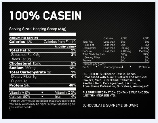 Склад Gold Standard 100% Casein Optimum Nutrition: