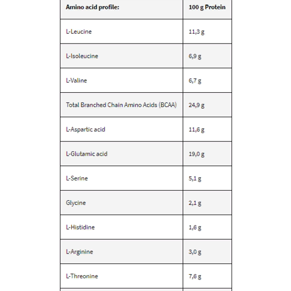 - поліпшення відновлення. Продукт має чудовий амінокислотний профіль, що допомагає прискорити відновлювальні процеси в організмі після фізичного навантаження. Амінокислоти відіграють важливу роль у регенерації м’язів та скороченні часу відновлення. Після інтенсивного тренування ця спортивна добавка знижує м’язові ушкодження та втому, прискорюючи відновлення й підготовлюючи ваш організм до наступного тренування;
