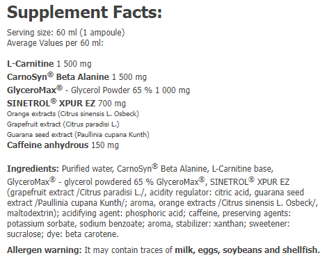 Приймайте 1 щот (60 мл) за 20–30 хв до тренування.