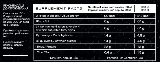 30 г продукту додати у 250-300 мл води, змішати. Вживати 2-3 рази на день: між прийомами їжі, після тренування.