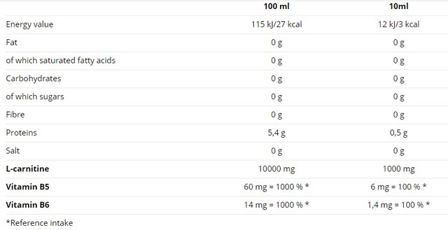 Carnitine 100000 Nutrend - жироспалювальний напій на основі L-карнітину, амінокислоти, яка допомагає покращити обмін речовин спортсмена та контролювати за вагою. Поєднання L-Carnitine з дієтою і тренуваннями сприяє зменшенню жирових відкладень та схудненню.